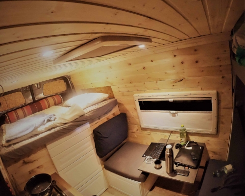 Paneling and floor finished, roof windows finished, after the first propose with Sikaflex was leaking..